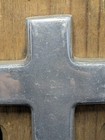 Vtg Mid Century Modern Wall Cross Minimalist, Metal Inlay,wooden Base, 8 1/2”