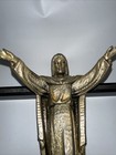 Vintage Wooden Wall Crucifix Cross Brass Cast Metal Jesus Christ 10" X 5.25”