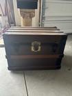 Antique Wood Steamer Trunk With Tray Chest Coffee Table Storage Box
