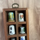 Wooden Display Case Shelf Holds 100 Thimbles With Collection Of 51 Vtg Thimbles
