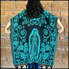 Mexican Virgin Mary Reversible Poncho Teal And Black Poncho One Size