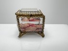 Vtg Gold Filigree Ormolu Footed Beveled Glass Casket Jewelry Box 8" X 4.5"