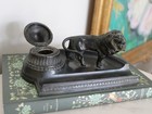 Rare Vintage Art Nouveau Lion Cast Metal Inkwell & Pen Holder Possibly Bronze