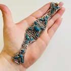 Vintage Faux Turquoise South Western Bracelet Silver Tone Etched