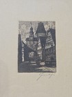 Vtg 1940s Etching Print Art Black & White Rothenburg Ob Der Tauber German Signed