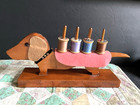 Vtg Handmade Primitive Wooden Dachshund Dog Thread Holder W/thread Very Wellmade