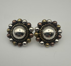 Vintage Taxco Brutalist Abstract Dome Earrings Sterling Silver 925 Mixed Metal
