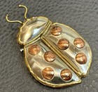 Vintage Mexico Silver Tone Copper Mixed Metal Large Beetle Brooch Pin Pendant