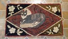 Vintage Folk Art Cat Wearing A Bow Hooked Wool Rug 36.5 X 21"