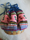 Vintage & Rare Seminole Native American Basket & Patchwork Drawstring Purse/bag