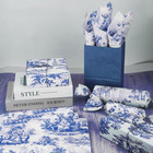 90 Sheets 20 * 14 Inches Blue French Vintage Print Tissue Bulk, Retro Blue Frenc