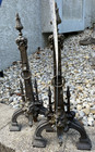 Antique Cast Iron Gothic Medieval Fireplace Andirons / Very Cool - Unique