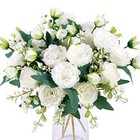 Ezflowery Artificial Peony Silk Flowers Arrangement Bouquet For Wedding - White