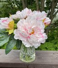 Artificial Peony Flower Silk Bouquet 4 Bundles, Light Pink