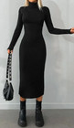 Womens Dress Size Medium Black Bodycon Turtleneck Long Sleeve Midi