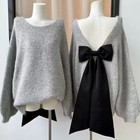 Backless Knit Women's Sweater Bow Loose Autumn Winter Long Sleeve Top Knitwear