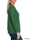 Zenana 2475 Waffle Knit Top Long Raglan Sleeve Split Sides Sweater