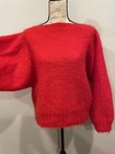 Womens High Neck Loose Fit Knitted Long Puff Sleeve Knitwear Sweater Spring Size
