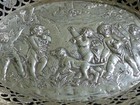 Antique German 19.c Repousse Silver Bowl Dish With Cherubs , Hallmarked 800