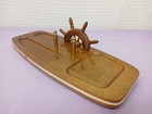 Vintage Wood Valet Nautical Ship Helm Wheel Dresser Tray Men's Desk Organizer