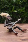 Wooden Hand Carved Primitive Tribal Guitarist Tiki Statue Bar Guitar Figurine -c