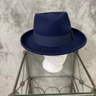 Hats In The Belfry Fedora Hat W Feather Navy Blue 100% Wool Felt Men’s M/21.5”
