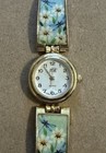 Vintage Jennie B Gold Tone Floral Flower Enamel Inlay Watch Floral Cottagecore