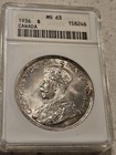 1936 Canada Silver Dollar Uncirculated Anacs Ms63 Canadian $1, Old Small Holder