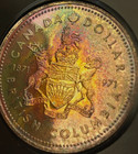 1971 Raw Sp Canada 1 Dollar Beautiful Clam Shell & Foam Rainbow Toned Colors Rev