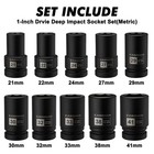 10pcs 1-inch Drive Deep Impact Socket Set, Metric, Cr-mo, 21,22,24,27,29,30,3...
