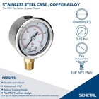 Senctrl 0-15 Psi Low Pressure Gauge, 2" Dial Size, 1/4 Npt Lower Mount