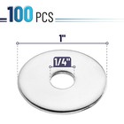Bates- Stainless Steel Fender Washers, 1/4"x1", 100 Pcs,1/4 Stainless Steel Flat