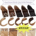 Clip In 100% Real Remy Human Hair Extensions Full Head 8 Pieces Brown Black Grey