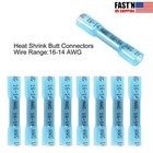 100pcs Blue Heat Shrink Butt Connectors Crimp Gauge 16-14 Awg Wire Terminals Us