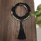 108 Prayer Beads Buddhist Meditation Amulet Mala Black Agate Aventurine Necklace