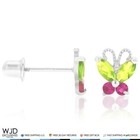 14k White Gold Peridot & Ruby Butterfly Baby Screw Back Stud Kids Earrings