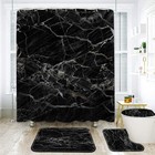 Black Marble Shower Curtain With Bath Rugs Sets, 4 Pcs Gray Marble Patterns B...