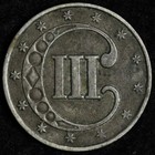 1853 Three Cent Silver F Uncertified #522