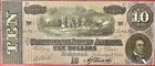 Antique 1864 $10-dollar Banknote Confederate States Of America Civil War Money