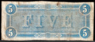 ~1864 Confederate States Of America $5 Five Dollars - Civil War Note