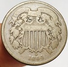 1864 Shield Two Cent Piece Coin First Year Vg Very Good Details