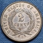 1865 Two Cent Piece, Much Better Condition, Anacs Au53, Free Shipping