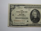 $20 1929 Boston Ma National Currency Federal Reserve Bank Note Bill Vf Condition