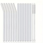 12 Pcs Reusable Glass Drinking Straws 6 Straight & 6 Bent 8x8mm With 2 Brushes