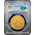 1874-cc Liberty Gold Double Eagle $20 Pcgs Xf45 Cac