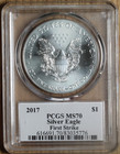 2017 Silver American Eagle $1 Pcgs Ms70 - First Strike Absolutely Gorgeous Coin!