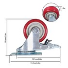 4 × 4 Inch Caster Wheels Swivel Plate Total Lock Brake Polyurethane Pu Red