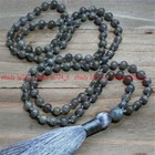 Gray Labradorite Gems Tibet Buddhist 108 Prayer Beads Mala Necklace Meditation