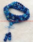 6mm Blue Agate Gem Tibet Buddhist 108 Prayer Beads Mala Necklace Z2102