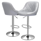 Set Of 2 Grey Modern Bar Stool Adjustable Swivel Leather Seat Gaming Chair Style